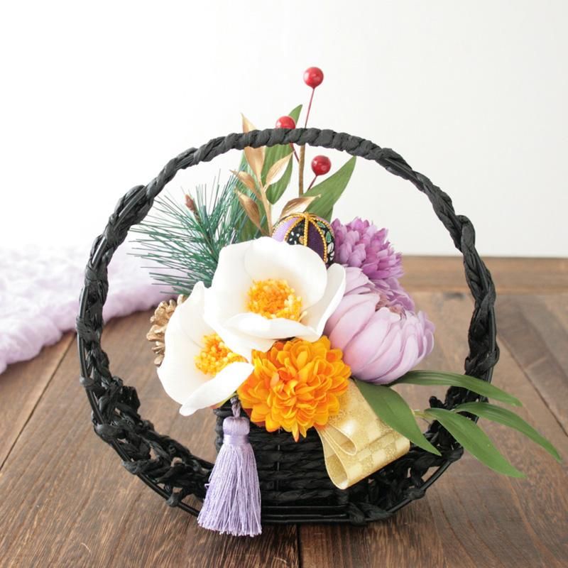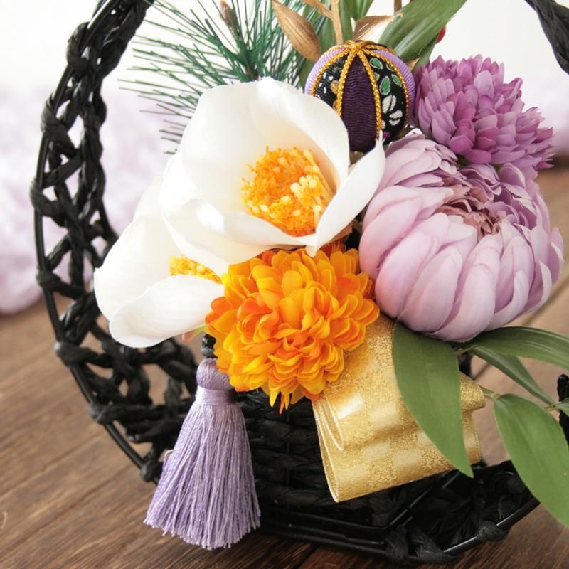 花手毬と菊 白椿のお正月アレンジメント お正月飾り2026
