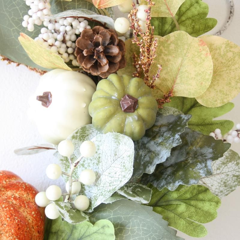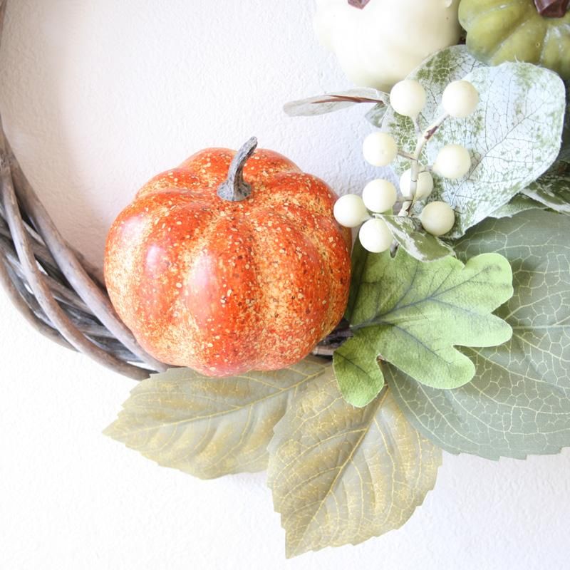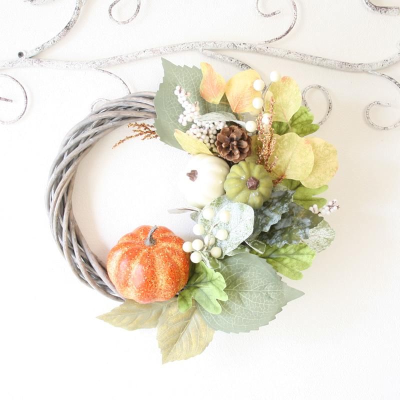 大きなかぼちゃ付きシャビーカラーの秋リース オレンジパンプキン ハロウィン