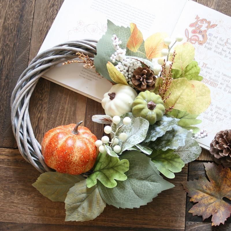 ハロウィンシーズンはもちろん、秋から冬にかけて長くお楽しみいただけるリースです。